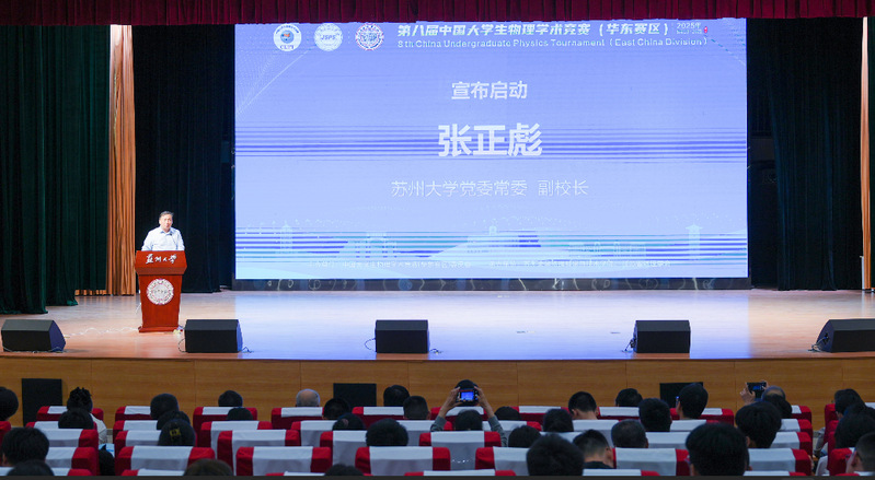 2025年第八届中国大学生物理学术竞赛(华东赛区)于5月23日至25日在苏州大学天赐庄校区圆满举行。本次赛事由中国大学生物理学术竞赛(华东赛区)委员会主办,直播 、江苏省物理学会共同承办,吸引了华东地区43所高校的42支代表队参赛。竞赛现场汇聚了近500名参赛师生,通过学术竞技与思维碰撞展现物理学科魅力。