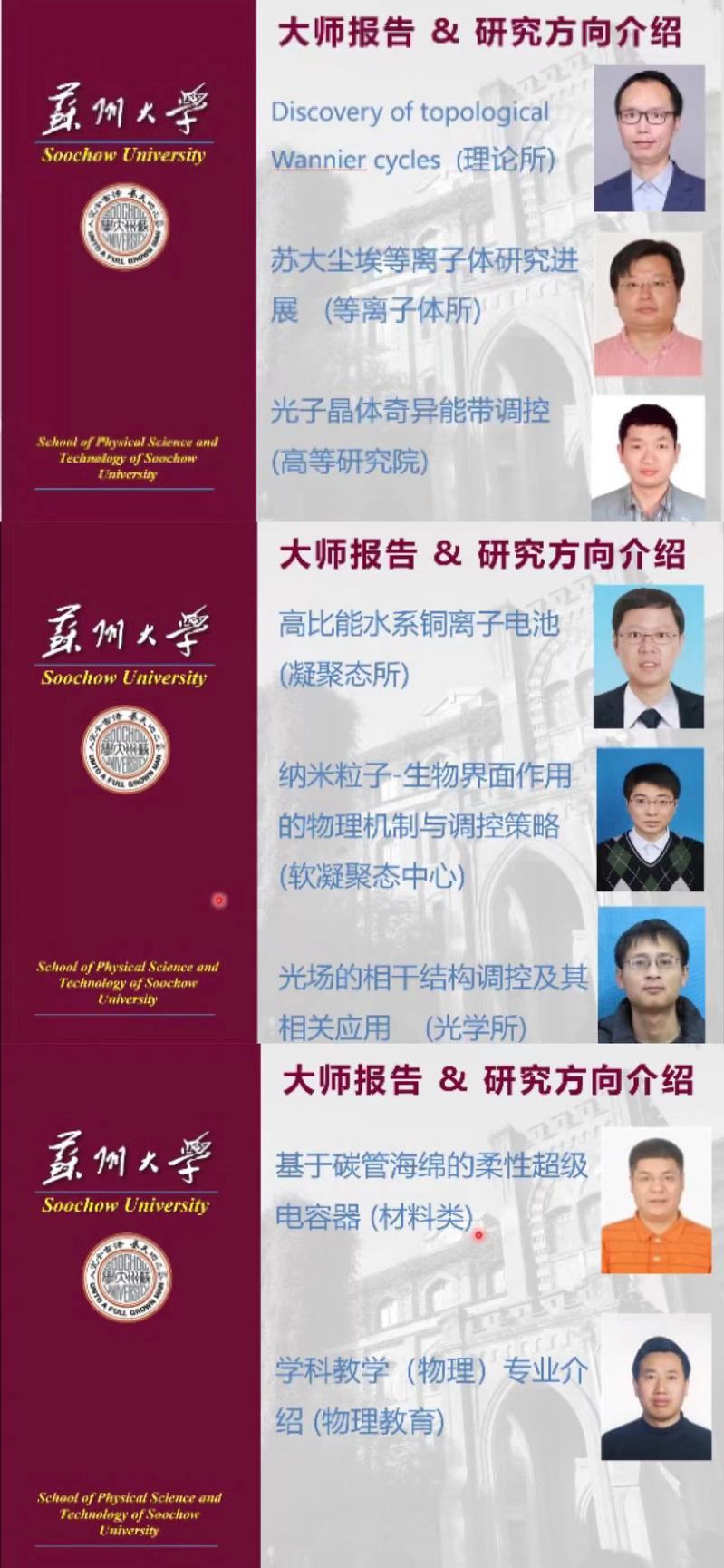 开营仪式结束后,杭志宏副院长给营员们做了考研辅导报告。他从为何选择苏大、如何报考苏大物理学院、以及招生政策及流程的解读等方面进行了详细介绍,为营员们下半年推荐免试报考和统考专业选择提供了更细致的参考。为了让营员们进一步感受学术氛围,本次夏令营邀请了学院的学科带头人分别围绕物理学科方向的最新进展做了精彩纷呈的学术讲座。