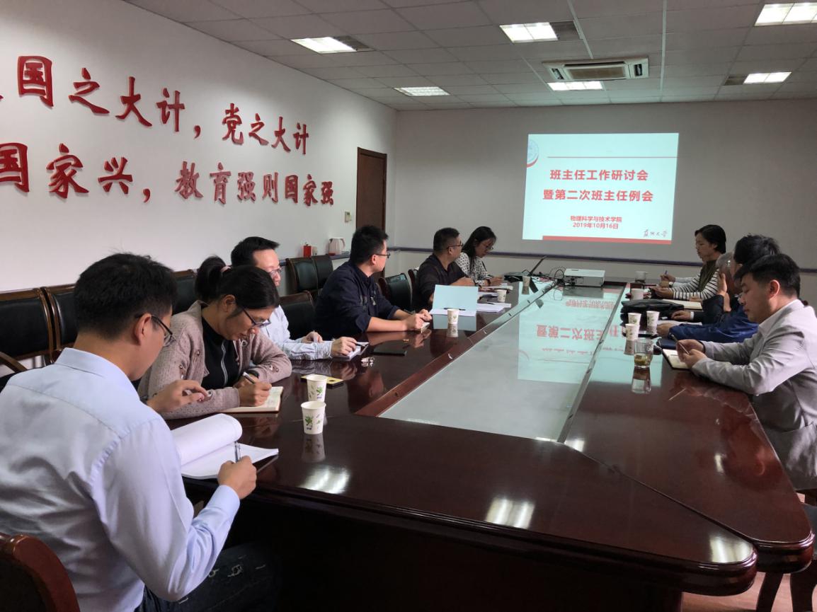 随后,党委副书记谢燕兰就当下学院重点中心工作做了部署,团委副书记郭永坤也针对学院团委的近期工作做了汇报交流。之后,各年级辅导员、班主任就当下班级工作做了充分讨论。19级物理学一班的陈亚红老师分享了针对新生开展的一系列增强班风和班级凝聚力的活动,如:组织新生在早自习集中训练英语四级听力、创建班级微信公众号、设计班徽等,给其他班级提供了很好的借鉴。会议最后,学院党委书记孙德芬做了总结发言。孙书记表示:纸上得来终觉浅,绝知此事要躬行,要把两位老师传授的经验在我们的日常工作中内化于心,外化于行,要在今后的实践当中不断去体会、去实践,做到知行合一。她强调,班主任和学生接触最多,要注重思想引领,培养学生德智体美劳全面发展,特别是意识形态建设。要注重与学生“玩”在一起,要把握一定的度。希望各位班主任用心、用情、用力做好班主任工作。